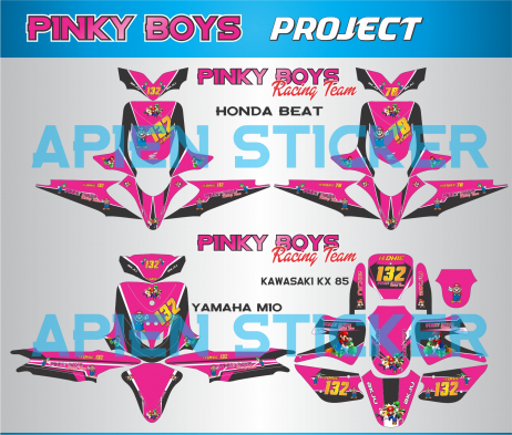 Striping Motor untuk Motor Honda Beat, Yamaha Mio & Kawasaki KX bertemakan Mario Bros dengan warna dominan Pink.